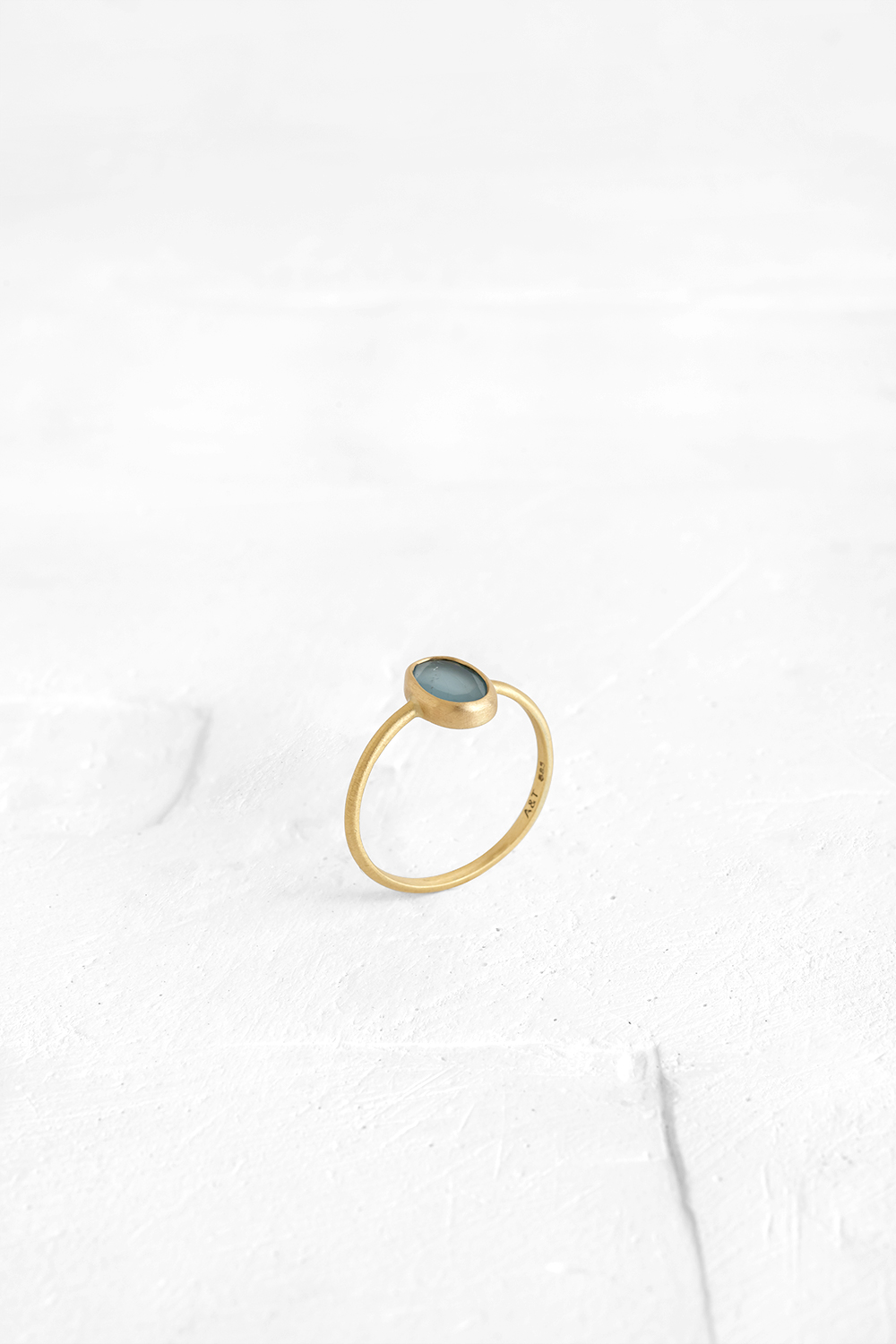 A one-of-a-kind thin ring, set with sliced stones. The setting band cases the selected stone, different in each ring, wrapping its natural shape and creating a splash of colorful dots, like glittering powder.
