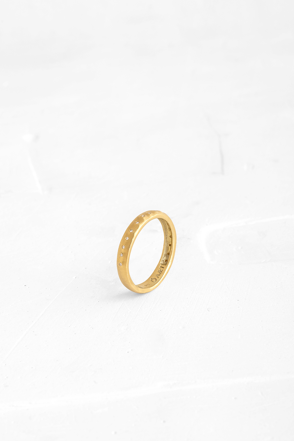 Inspired by the mundane nail, the designers created a series of rings in which the precious metal, gold,  is perforated and marked by a simple nail.  Giving the ring a unique texture and story.