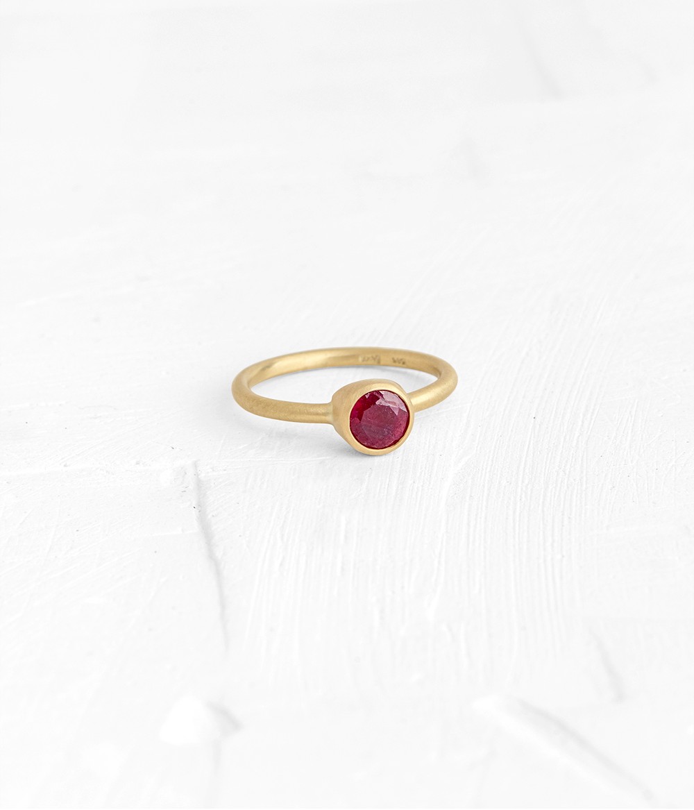 Classic & timeless: this gold ring features a handmade bezel set with a round Ruby cabochon.